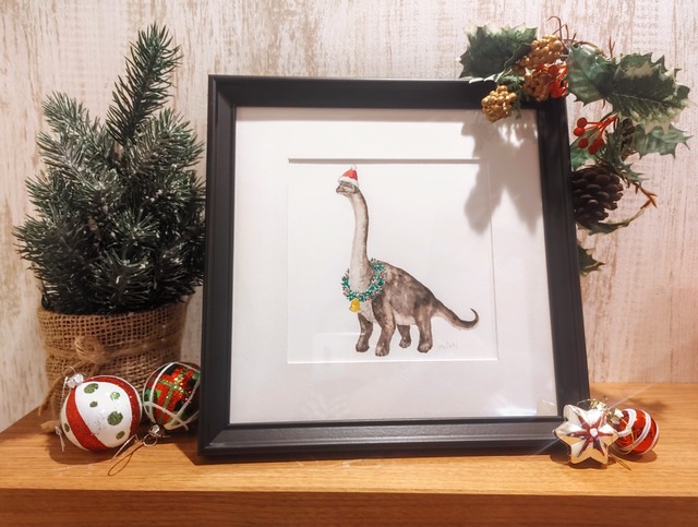 クリスマス限定!サンタ帽をかぶった恐竜イラストです。 色が分離する絵の具を使った水彩画の原画となっております。 注)原画のみの販売です。額や周りの装飾は付いてきません。 返品不可 商品詳細 17×17cm 2023.11作成