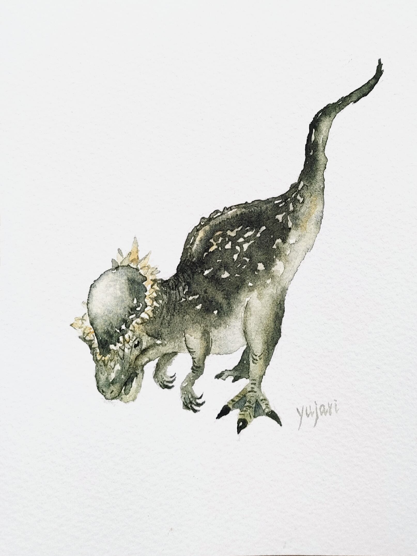 分離色という絵具を1色だけ使って描いている恐竜シリーズです(画像二枚目)。
