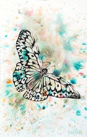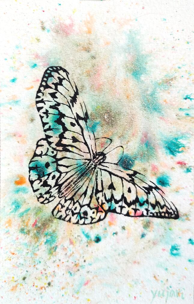 水彩画。ピクシーパウダーを使用しているためラメの粉落ちがあります