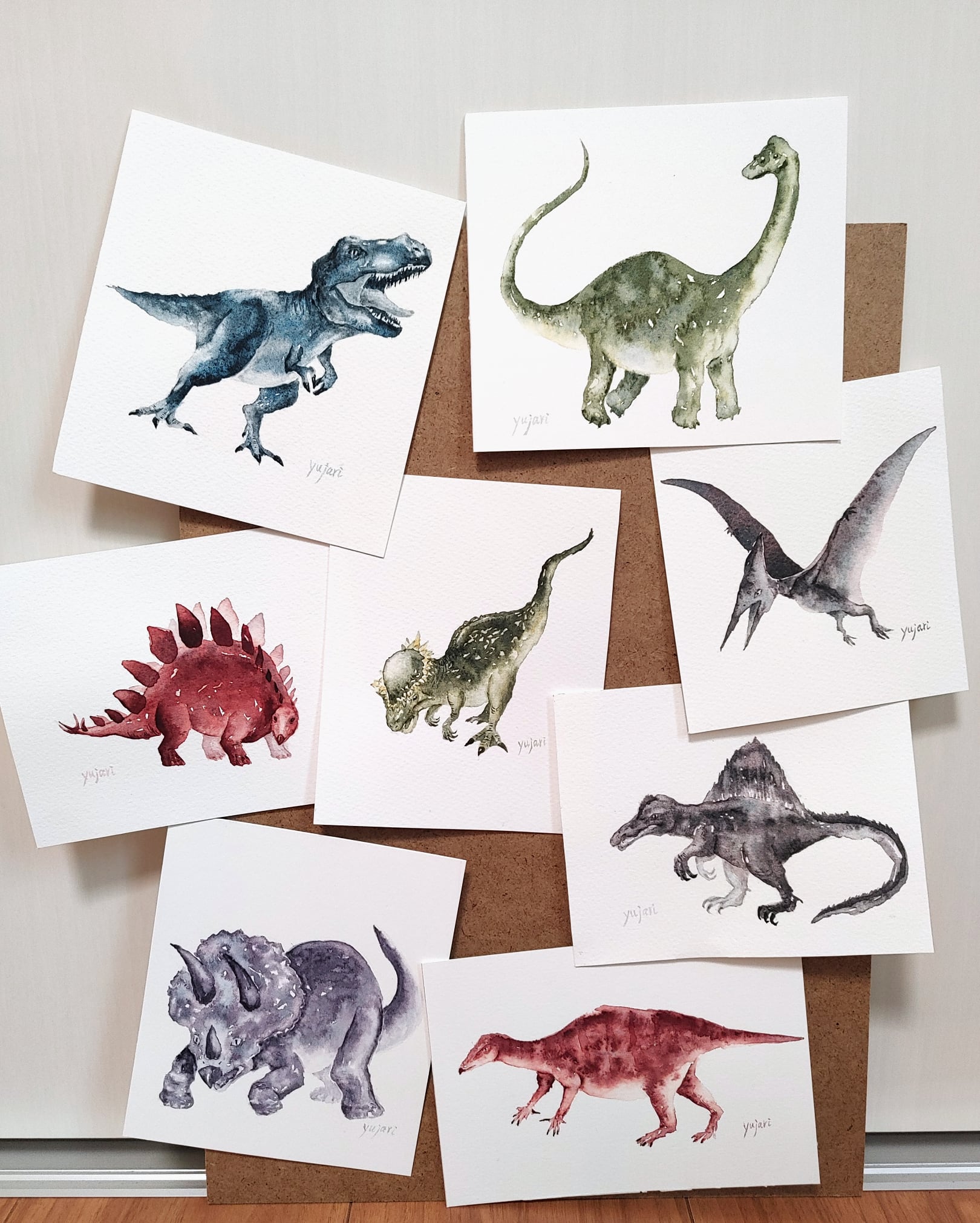 分離色という絵具を1色だけ使って描いている恐竜シリーズです(画像二枚目)。