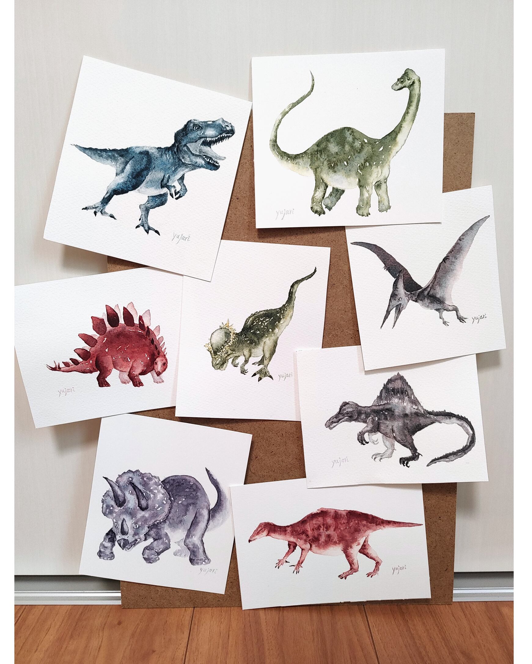 分離色という絵具を1色だけ使って描いている恐竜シリーズです(画像二枚目)。